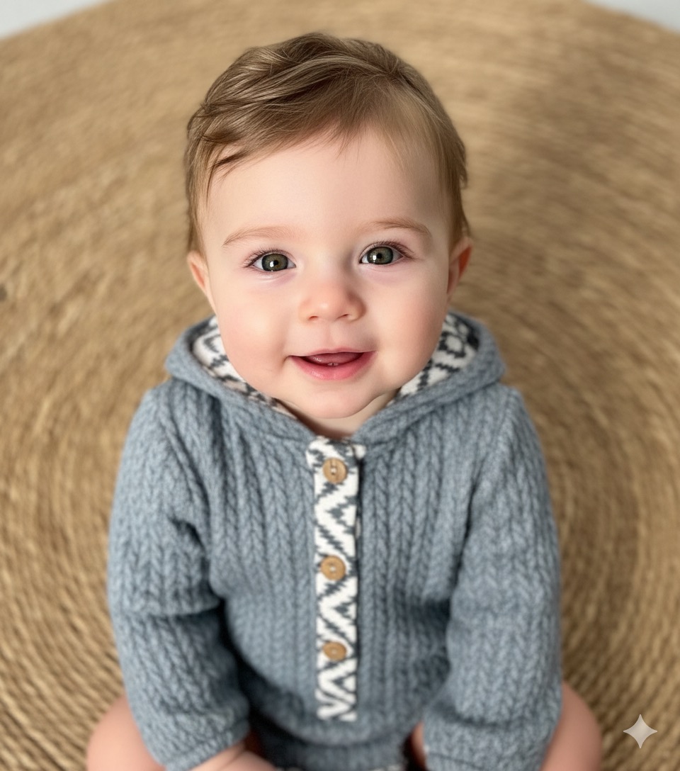 Pelele con capucha de la familia Estrella Polar. 100% Algodón